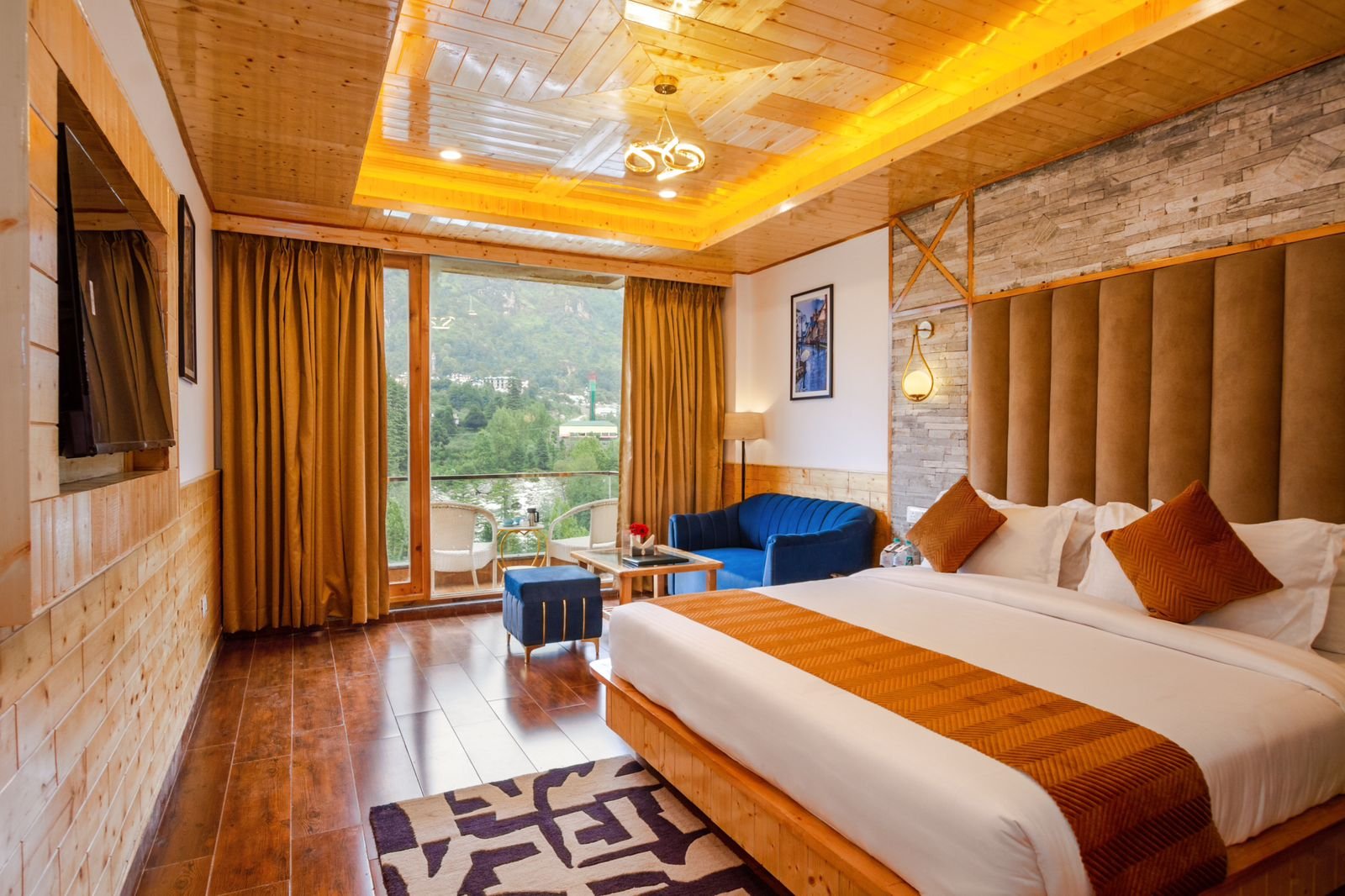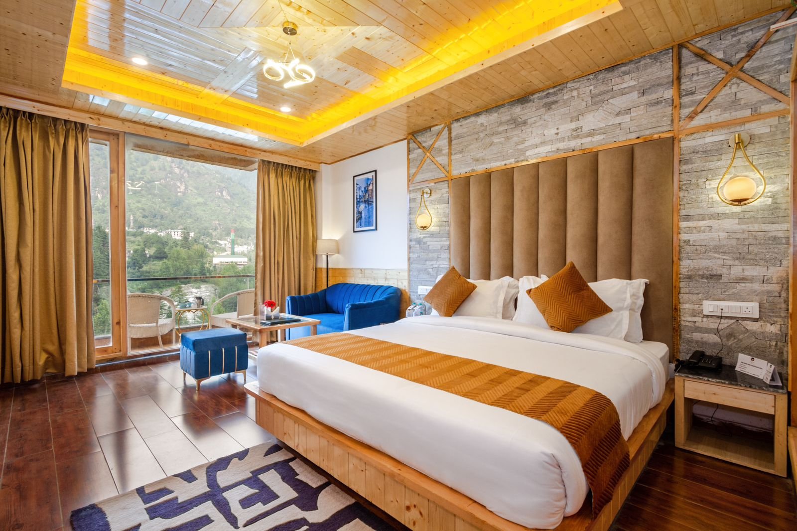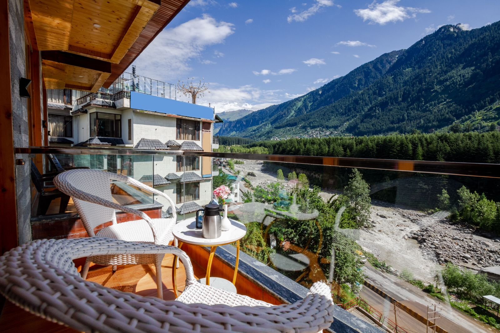 • What room types are available at The River Pine Resort Manali?The resort offers a variety of luxurious rooms including River View Rooms, Premium Rooms, and Family Suites. All rooms come with private balconies, free Wi-Fi, LED TVs, 24×7 hot water, and scenic views of the Himalayas.